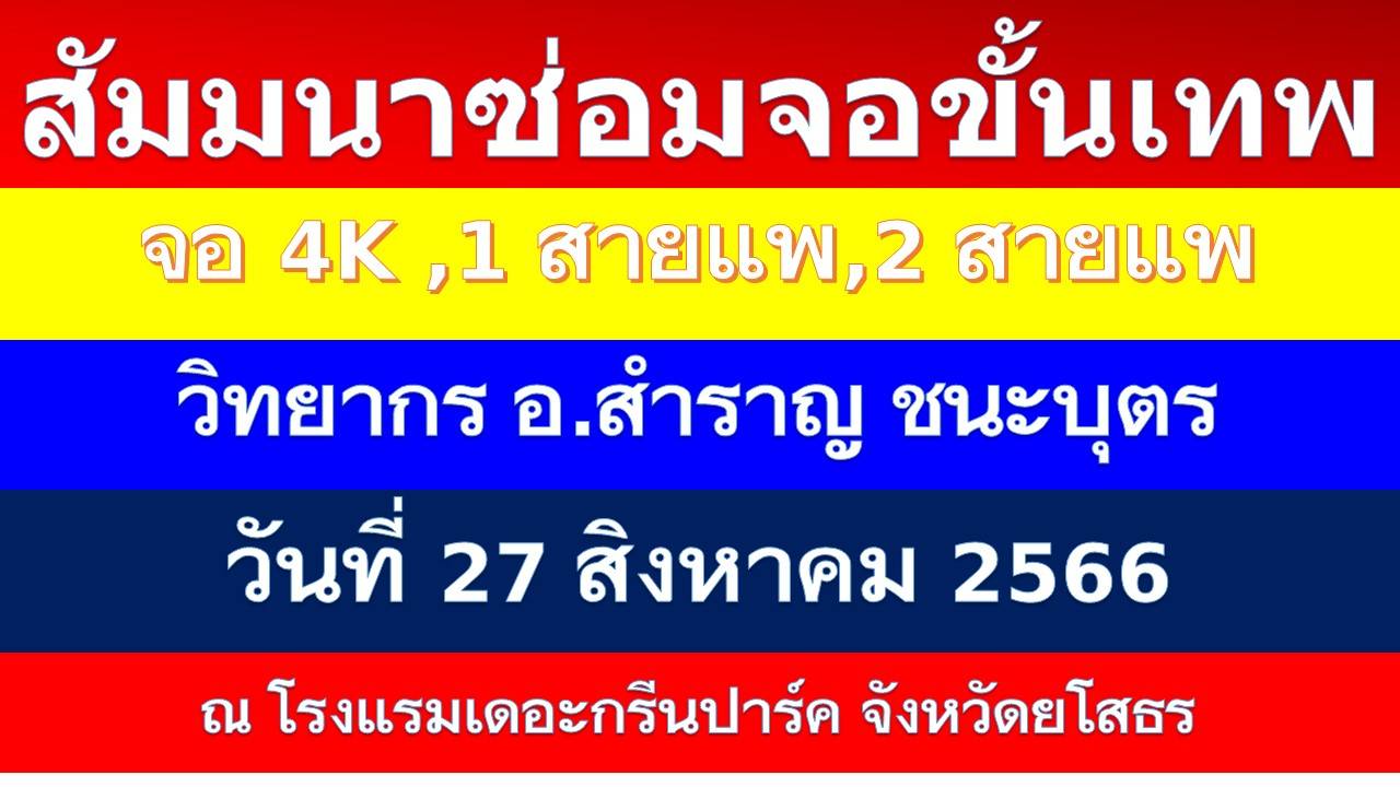เรียนเชิญ เข้าร่วมสัมมนา "เทคนิคการซ่อมจอขั้นเทพ" วันที่ 27 สิงหาคม 2566 ณ โรงแรมเดอะกรีนปาร์คแกรนด์ จังหวัดยโสธร